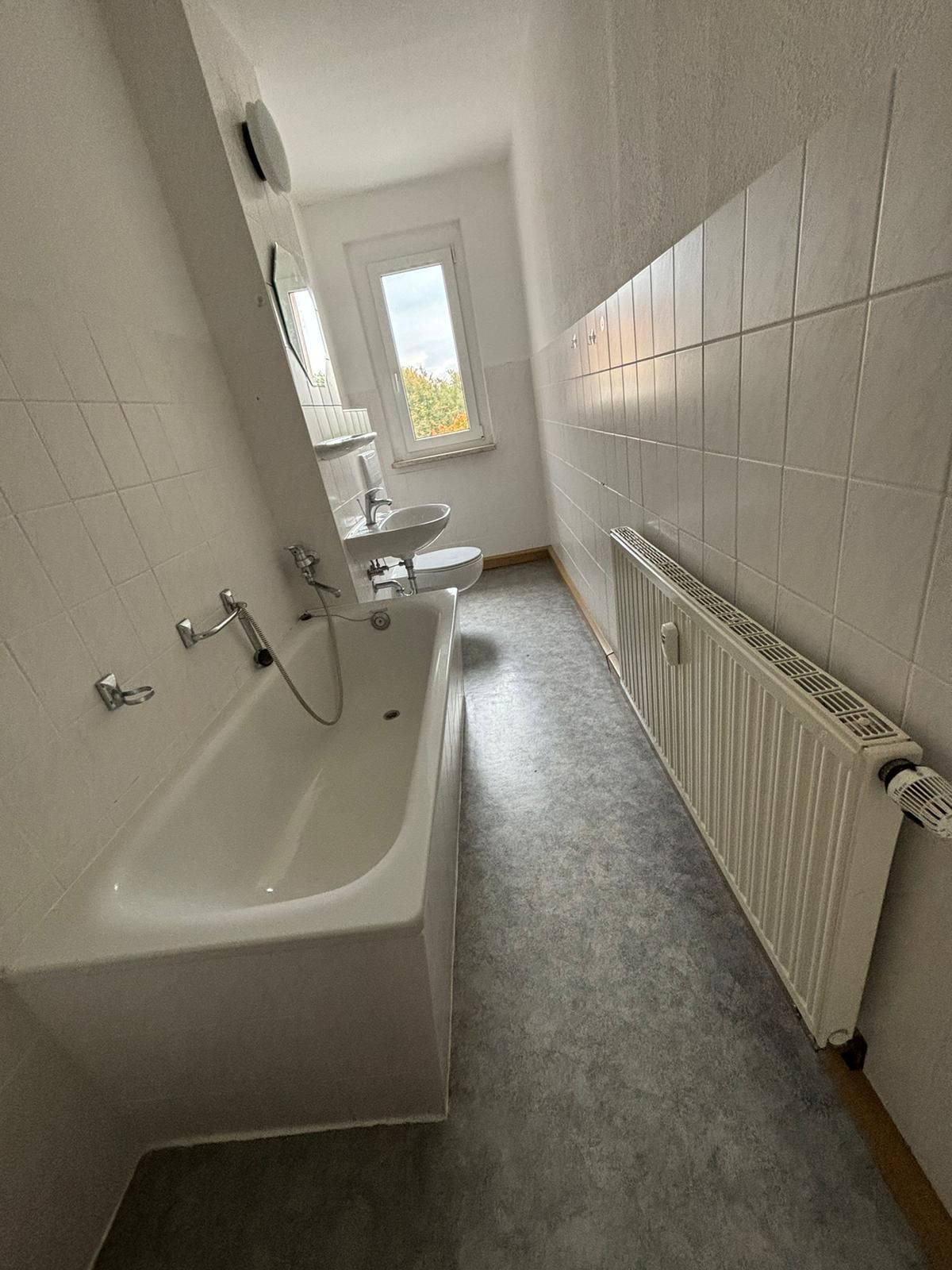 • Badezimmer mit Fenster und Waschmaschinenanschluss